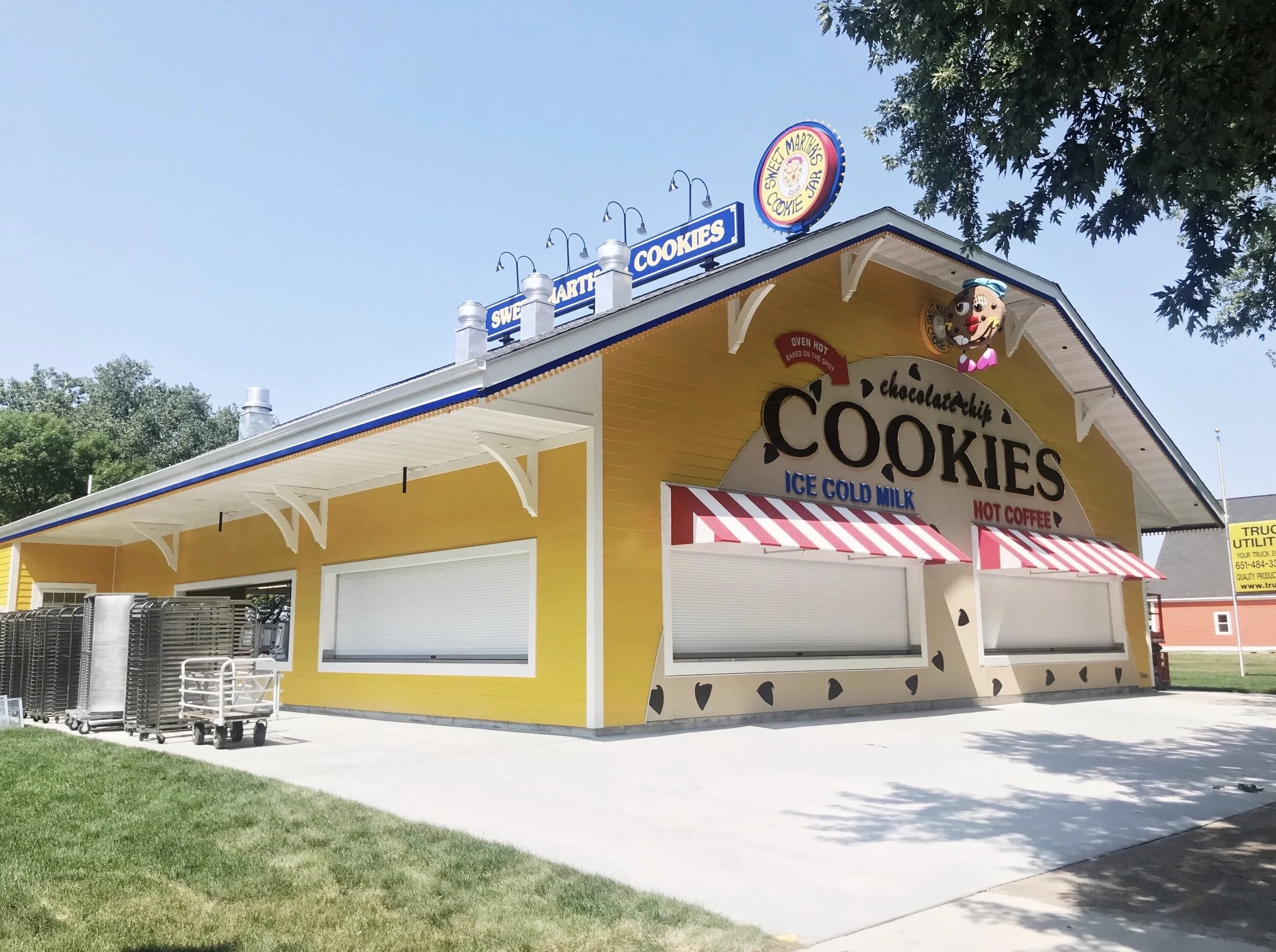 A few weeks later, we opened our first State Fair stand, a 9’ x 11’ structure that the owners built themselves. At first we were able to make 200 cookies in 12 minutes. Now we can bake 44,000 cookies in the same amount of time.